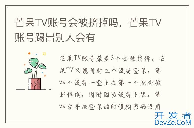 品牌型号:iPhone13 pro pro 系统:IOS15.5 软件版本:芒果TV7.1.6开发者_开发问答 芒果TV账号最多3个会被挤掉。芒果TV只能同