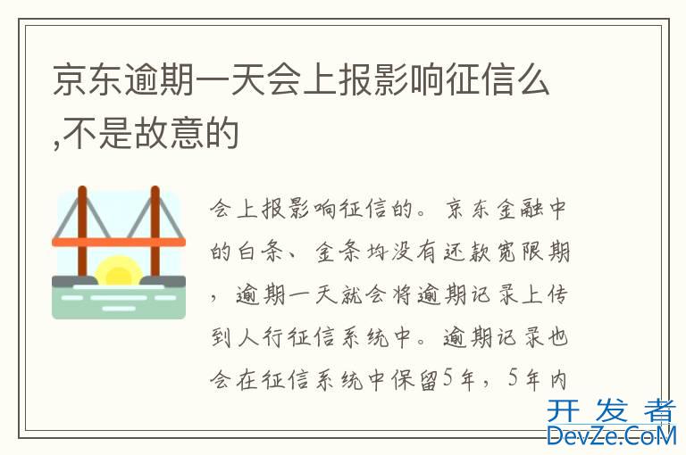 品牌型号:iPhone13 pro pro 系统:IOS15.5开发者_开发技巧 软件版本:京东11.1.2京东逾期一天不是故意也会上报影响征信的。京东金融中的白条、金条均没有还款宽限期,逾期一天就会