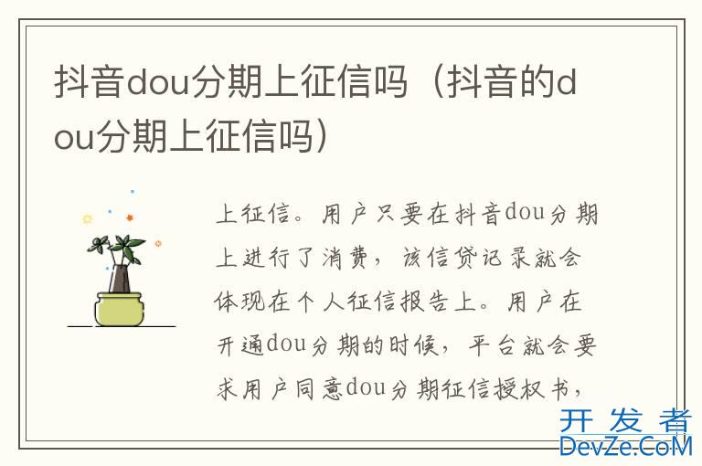品牌型号:华为P50 系统:HarmonyOS3 软件版本:抖音20.5.0抖音dou分期是上征信的。用户只要在抖音dou分期上进行了消费,该信贷记录就会体现在个人征信报告上。用户在开通dou分期的时