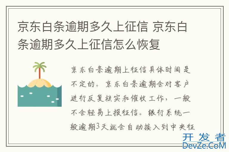 品牌型号:iPhone13 pro pro 系统:iOS 16.0 软件版本:京东11.2.5京东白条逾期上征信具体时间是不定的。京东白条逾期会对客户进行反复核实和催收工作,一般不会轻易上报征信。银行