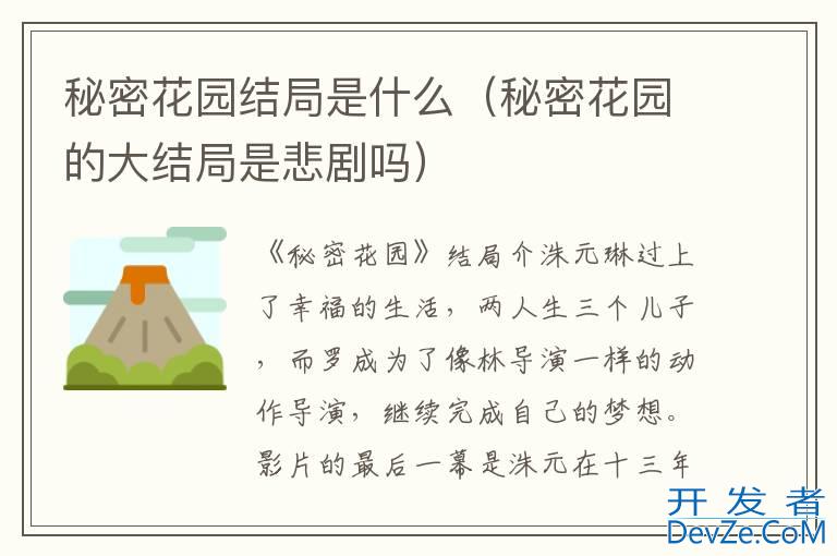 《秘密花园》结局介洙元琳过上了幸福的生活,两人生三个儿子,而罗成为了像林导演一样的动作导演,继续完成自己的梦想。影片的最后一幕是洙元在十三年前初次见到罗琳,此时此刻的洙元就爱上了罗琳,可是此刻的洙元处