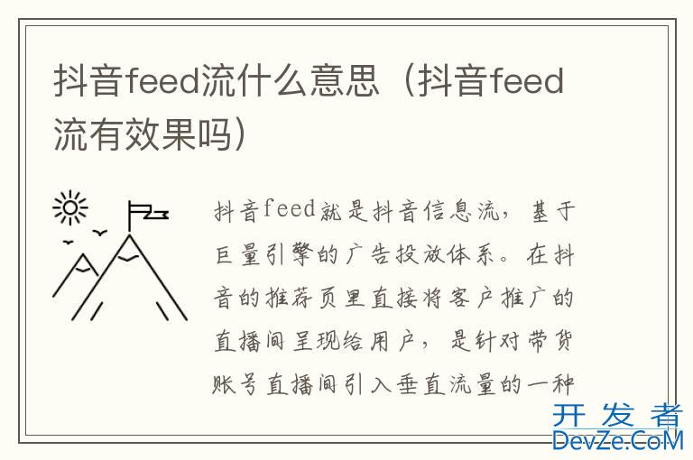 品牌型号:iPhone13 pro pro 系统:IOS15.4 软件版本:抖音20.5.0开发者_运维问答 抖音feed就是抖音信息流,基于巨量引擎的广告投放体