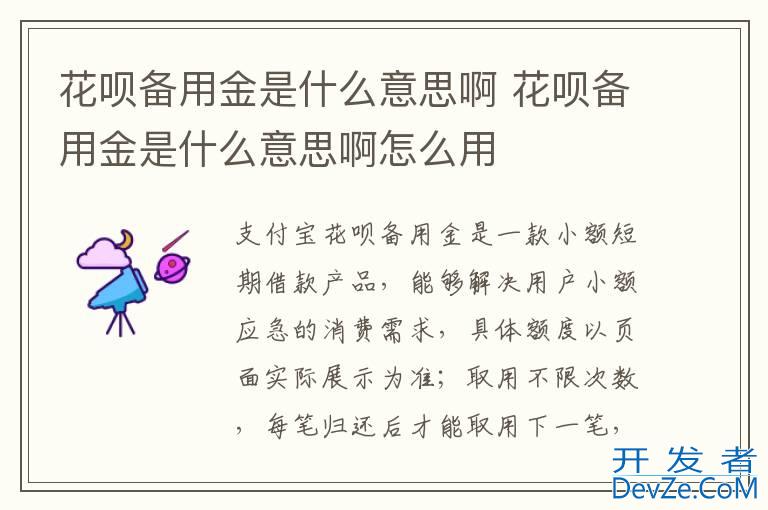 品牌型号:iPhone13 pro pro 系统:iOS 15.6 软件版本:支付宝10.2.90支付宝花呗备用金是一款小额短期借款产品,能够解决用户小额应急的消费需求,具体额度以页面实际展示为准;取
