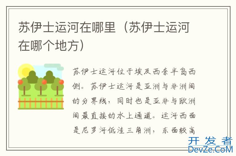 开发者_如何学运维 苏伊士运河位于埃及西奈半岛西侧。苏伊士运河是亚洲与非洲间的分界线,同时也是亚非与欧洲间最直接的水上通道。运河西面是尼罗河低洼三角洲