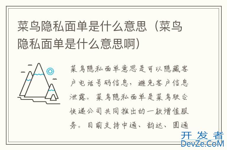 品牌型号:联想拯救者Y9000P 系统:Windows 11菜鸟隐私面单意思是可以隐藏客户电话号码信息,避免客户信息泄露。菜鸟隐私面单是菜鸟联合快递公司共同推出的一款增值服务。目前支持中通、韵达、圆通