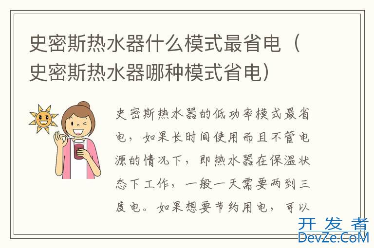 品牌型号:史密斯燃气热水器 系统:JSQ26-TM5开发者_StackOverflow社区 史密斯热水器的低功率模式最省电,如果长时间使用而且不管电源的情况下,即热水器在保温状态下工作,