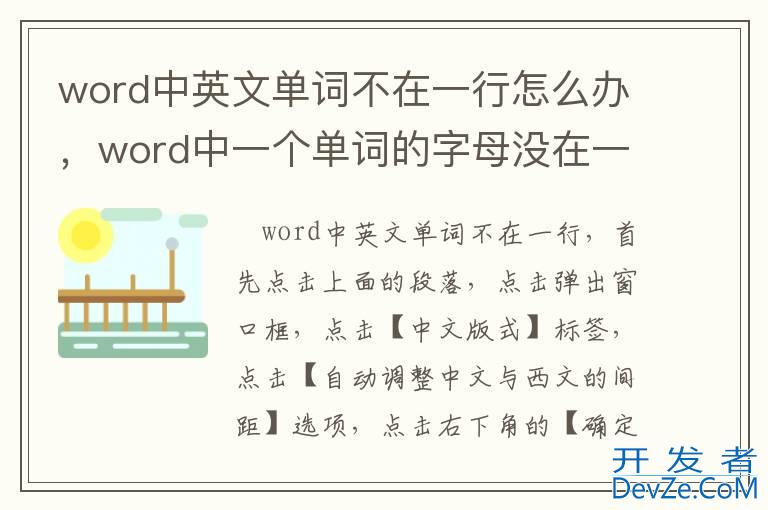 品牌型号:联想拯救者Y9000P 系统:Windows 11 软件版本:word2021word中英文单词不在一行,首先点击上面的段落,点击弹出窗口框,点击【中文版式】标签,点击【自动调整中文与西文的