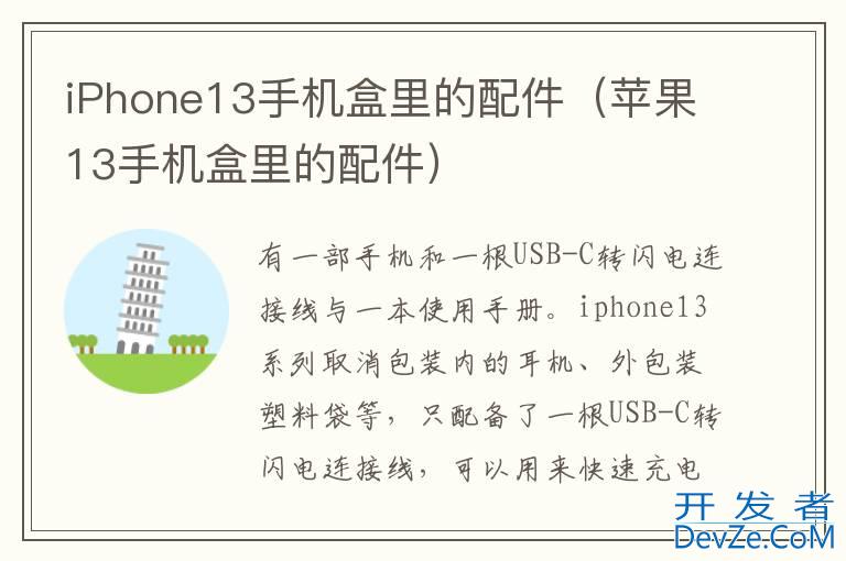 品牌型号:iPhone13 pro 系统:IOS15.5iPhone13手机盒里的配件有一部手机和一根USB-C转闪电连接线与一本使用手册。iPhone13系列取消包装内的耳机、充电头、外包装塑料袋等
