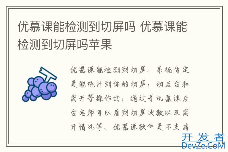 品牌型号:iPh开发者_运维百科one13 pro pro 系统:IOS15.5 软件版本:优慕课8.6.4优慕课能检测到切屏。系统肯定是能统计到你的切屏,切后台和离开等操作的,通过手机慕课后台老师可