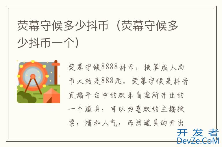 品牌型号:iPhone13 pro pro 系统:iOS 16.0 软件版本:抖音22.2.0开发者_运维技巧 荧幕守候8888抖币,换算成人民币大约是888元。荧幕守候是抖音直播