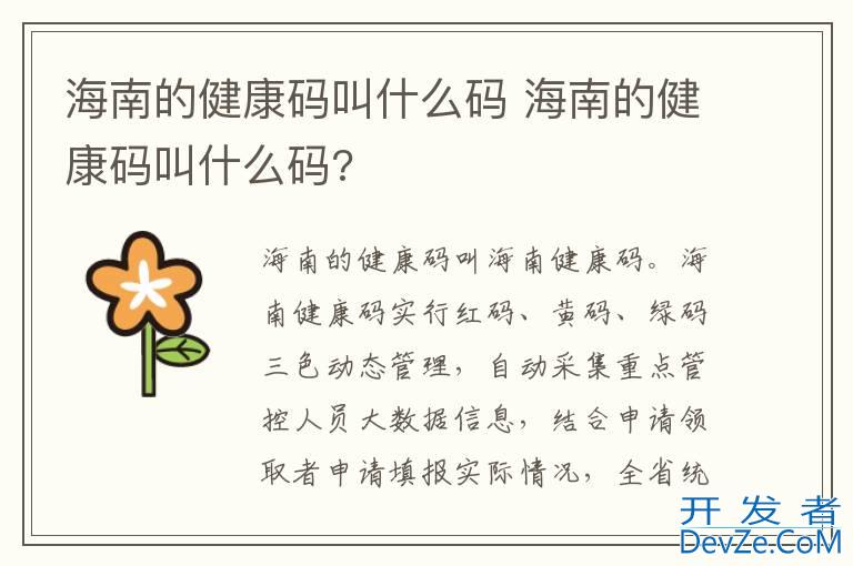 品牌型号:iPhone13 pro pro 系统:IOS15.5 软件版本:微信8.0.25&&支付宝10.2.76海南的健康码叫海南健康码。海南健康码实行红码、黄码、绿码三色动态管理,自动采集重点管