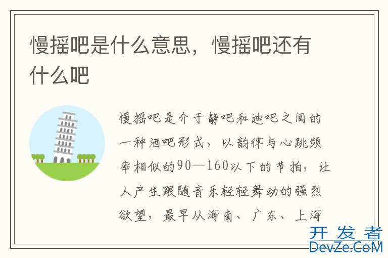 开发者_运维问答 慢摇吧是介于静吧和迪吧之间的一种酒吧形式,以韵律与心跳频率相似的90—160以下的节拍,让人产生跟随音乐轻轻舞动的强烈欲望,最早从海南、广东、上海等地开始流行