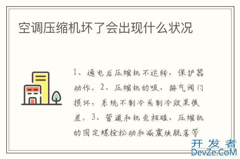 品牌型号:康佳空调 系统:KFR-35GW空调压缩机坏了出现的状况:1、通电后压缩机不运转,保护器动作。通常是压缩机失油或有杂质进入引起的抱轴或卡缸故障。2、压缩机的吸开发者_JS百科、排气阀门损坏,