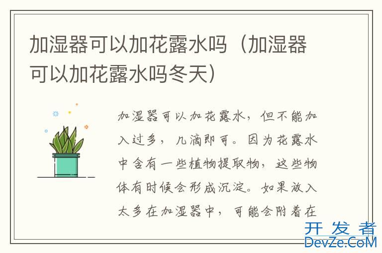品牌型号:美的加湿器 系统:SCK-1LA80W加湿器可以加花露水,但不能加入过多,几滴即可。因为花露水中含有一些植物提取物,这些物体有时候会形成沉淀。如果放入太多在加湿器中,可能会附着在超声波震荡体