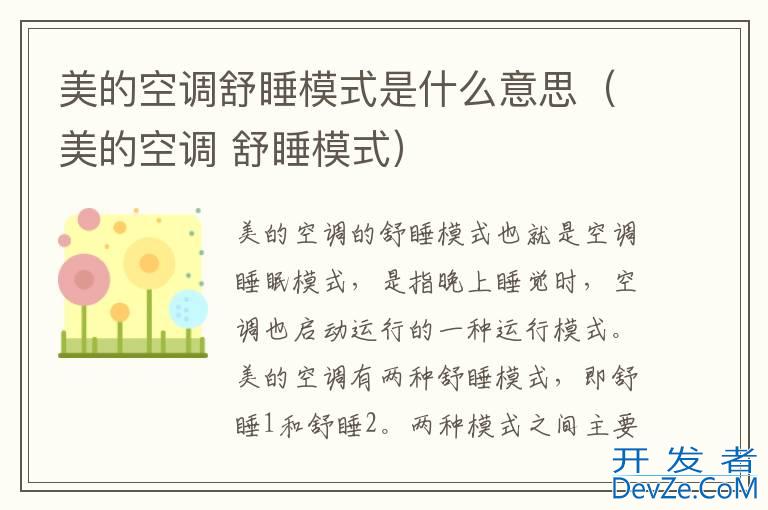 品牌型号:美的空调 系统:KFR-26GW/N8MCA1美的空调的舒睡开发者_运维知识库模式也就是空调睡眠模式,是指晚上睡觉时,空调也启动运行的一种运行模式。美的空调有两种舒睡模式,即舒睡1和舒睡2。