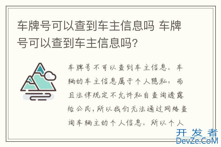 品牌型号:iPhone13 pro pro 系统:iOS 16.0车牌号不可以查到车主信息。车辆的车主信息属于个人隐私,而且法律规定不允许私自查询透露给公民,所以我们无法开发者_如何学C通过网络查询车