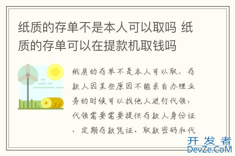 品牌型号:iPhone13 pro pro 系统:iOS 16.0纸质的存单不是本人可以取。存款人因某些原因不能亲自办理业务的时候可以找他人进行代领,代领需要需要提供存款人身份证、定期存款凭证、取款密