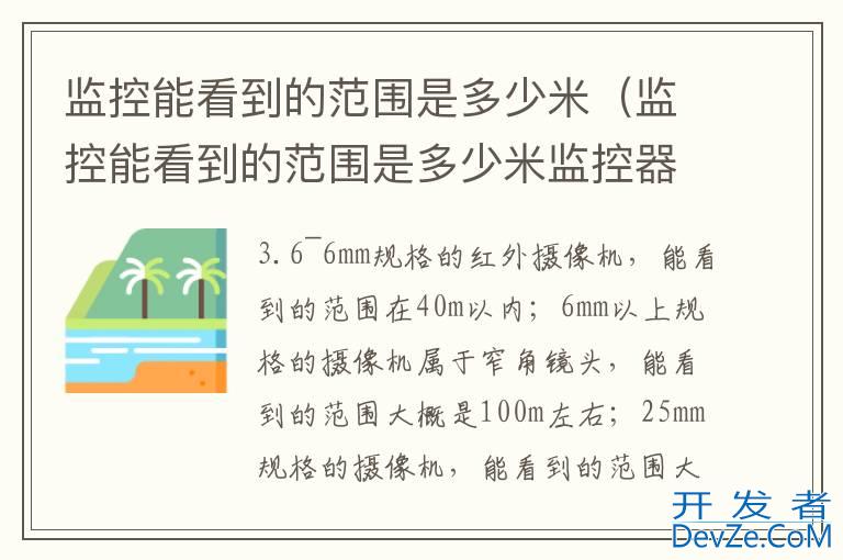 品牌型号:大华摄像头 系统:DH-P20T13.6~6mm规格的红外摄像机,能看到的范围在40m以内;6mm以上规格的摄像机属于窄角镜头,能看到的范围大概是100m左右;25mm规格的摄像机,能看到的