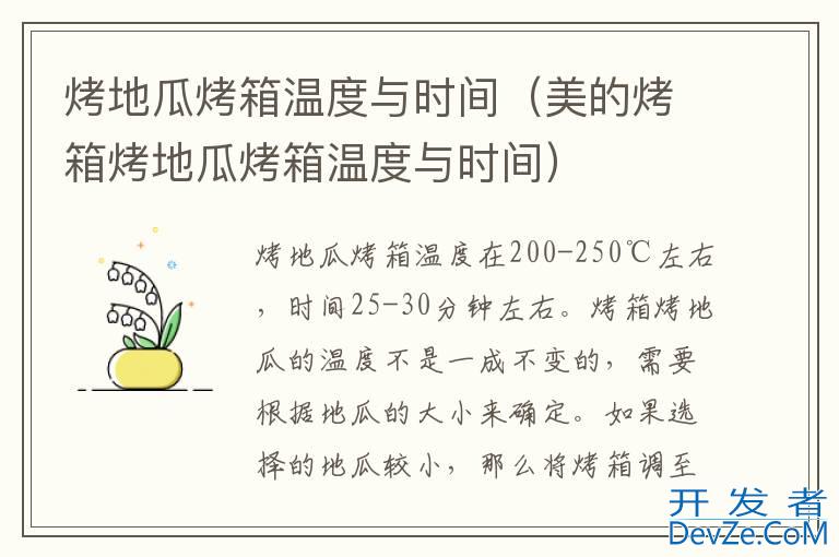 品牌型号:格兰仕电烤箱 系统:K40烤地瓜烤箱温度在200-250℃左右,时间25-30分钟左右。烤箱烤地瓜的温度不是一成不变的,需要根据地瓜的大小来确定。如果选择的地瓜较小,那么将烤箱调至220℃烤