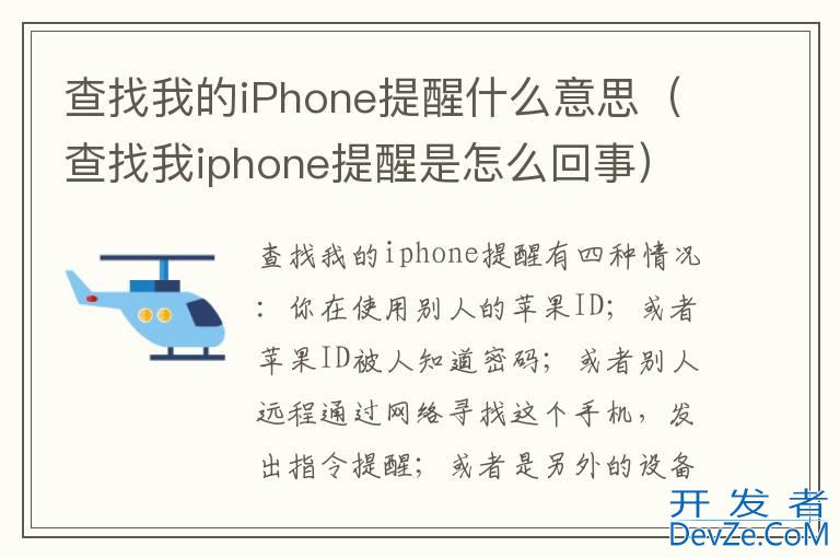 品牌型号:iPhone13 pro pro 系统:IOS15.4 软件版本:查找我的iPhonev4.0查找我的iPhone提醒有四种情况:你在使用别人的iPhoneID;或者iPhoneID被人知道