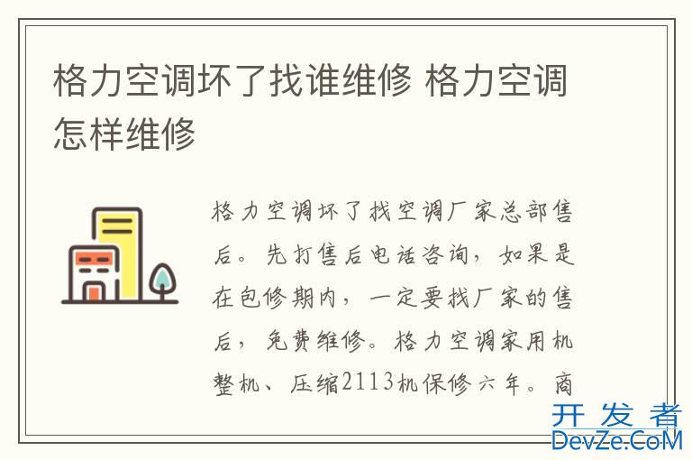 品牌型号:格力空调 系统:KFR-35GWNhGc1B格力空调坏了找空调厂家总部售后。先打售后电话咨询,如果是在包修期内,一定要找厂家的售后,免费维修。格力空调家用机整机、压缩2113机保修六年。商用