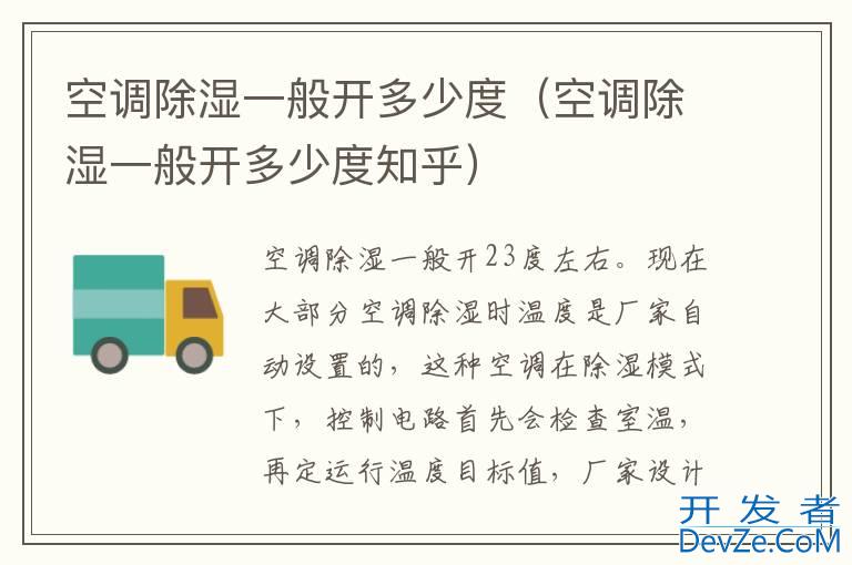 品牌型号:美的空调 系统:KFR-35GW/N8XHC1开发者_JS百科 空调除湿一般开23度左右。现在大部分空调除湿时温度是厂家自动设置的,这种空