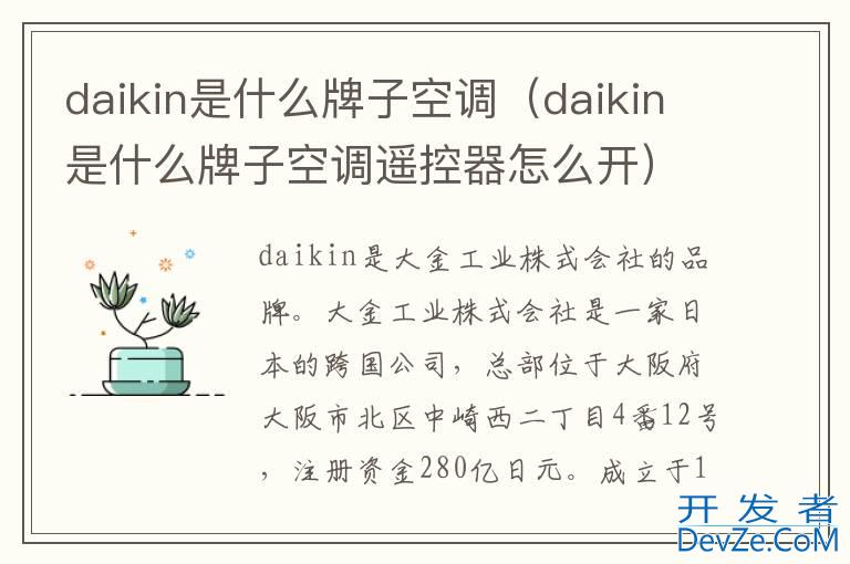 品牌型号:大金空调 系统:FTXB336WCLWdaikin是大金工业株式会社的品牌。大金工业株式会社是一家日本的跨国公司,总部位于大阪府大阪市北区中崎西二丁目4番12号,注册资金280亿日元。成立于