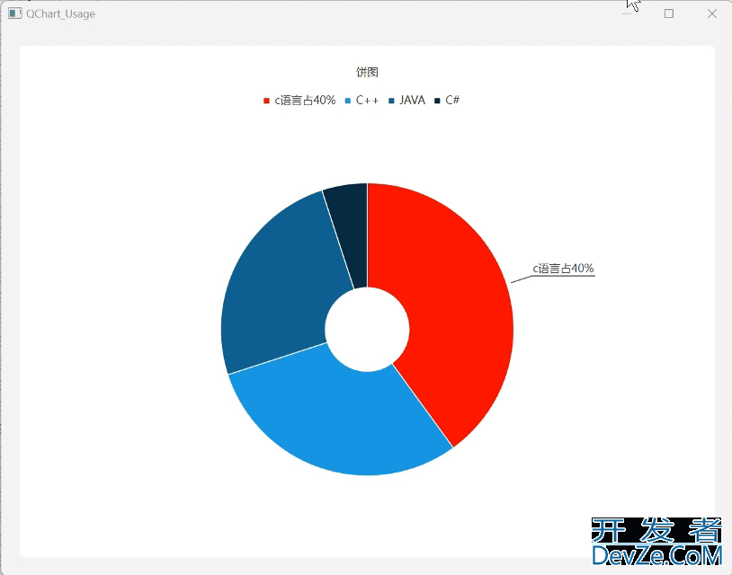饼图没有坐标轴,也不需要坐标轴 使用的系列是QPieSeries 饼图里面一个一个的块称为切片