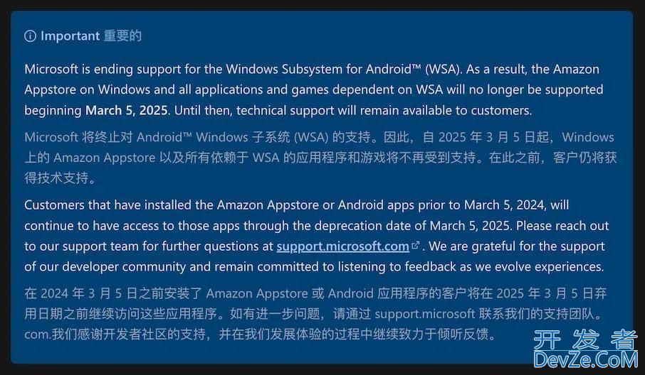 微软“砍刀部”又出手了——那个可以在 Windows 11 上运行 android 应用的子系统将于明年终止支持。