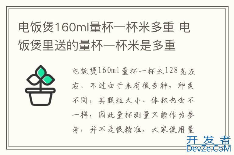 品牌型号:苏泊尔电饭煲 系统:SF40HC42电饭煲160ml量杯一杯米128克左右。不过由于米有很多种,种类不同,其颗粒大小、体积也会不一样,因此量杯测量只能作为参考,并不是很精准。大家使用量杯量米