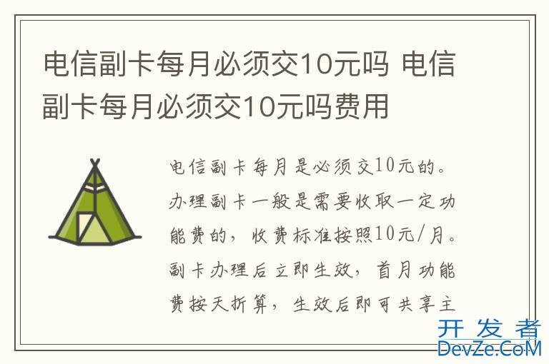 品牌型号:华为P50 系统:HarmonyOS3开发者_如何学编程 电信副卡每月是必须交10元的。办理副卡一般是需要收取一定功能费的,收费标准按照10元/月。副卡办理后