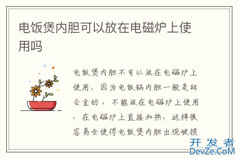 品牌型号:九阳电饭煲 系统:40N1电饭煲内胆不可以放在电磁炉上使用。因为电饭锅内胆一般是铝合金的 ,不能放在电磁炉上使用,在电磁炉上直接加热,这样很容易会使得电饭煲内胆出现破损的情况。电磁炉上只能用