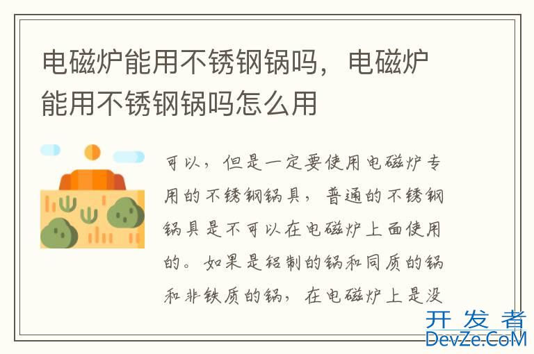 1、不锈钢锅可以在电磁炉上使用,只要符合电磁炉使用规范。 2、铁系锅类,这种锅开发者_开发知识库类里包含搪瓷锅、铸锅以及不锈铁锅、不锈钢锅类与专门用于电磁炉的复合底锅类,而且通常情况下,锅底的直径不可