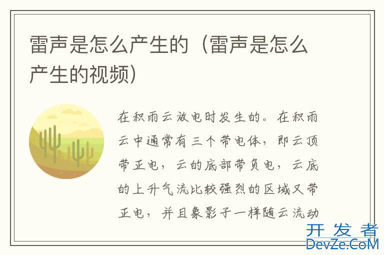 品牌型号:联想拯救者Y9000P 系统:Windows11雷声是在积雨云放电时发生的。在积雨云中通常有三个带电体,即云顶带正电,云的底部带负电,云底的上升气流比较强烈的区域又带正电,并且象影子一样随云