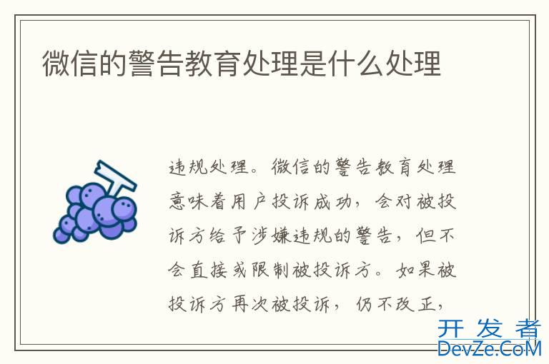 品牌型号:iPhone13 pro pro 系统:IOS15.5 软件版本:微信8.0.26微信的警告教育处理是违规处理。微信的警告教育处理意味着用户投诉成功,微信客服会对被投诉方给开发者_运维问答予