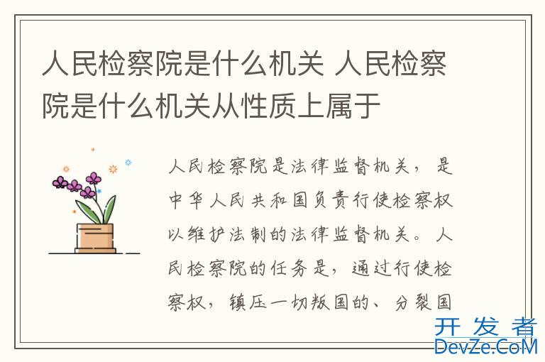 人民检察院是法律监督机关,是中华人民共和国负责行使检察权以维护法制的法律监督机关。人民检察院的任务是,通过行使检察权,镇压一切叛国的、分裂国家的和其他的反革命活动,打击反革命分子和其他犯罪分子,维护国