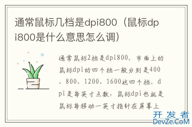 品牌型号:戴尔鼠标 系统:MS116开发者_开发百科 通常鼠标2档是dpi800。市面上的鼠标dpi的四个档一般分别是400、800、1200、1600这四个档。dpi是每英寸点