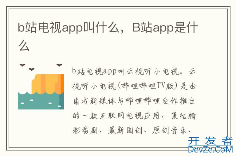 品牌型号:华为P50 系统:HarmonyOS开发者_开发问答3 软件版本:云视听小电视1.5.0.1b站电视app叫云视听小电视。云视听小电视(哔哩哔哩TV版)是由南方新媒体与哔哩哔哩合作推出的一款