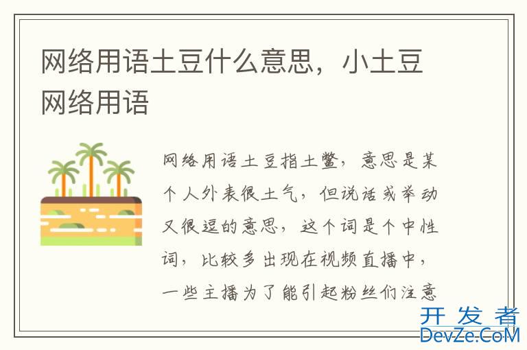 网络用语土豆指土鳖,意思是某个人外表很土气,但说话或举动又很逗的意思,这个词是个中性词,比较多出现在视频直播中,一些主播为了能引起粉丝们注意,刻意将自己打扮的很土气,也是为了在直播中产生强烈的对比。这