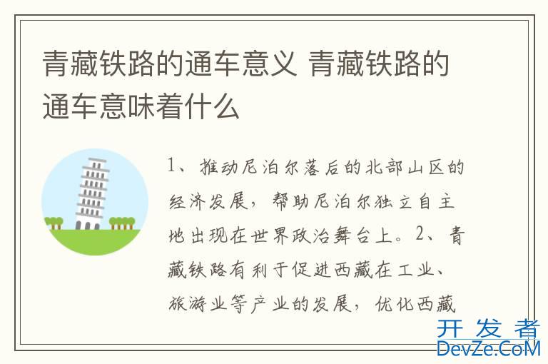 1、推动尼泊尔落后的北部山区的经济发展,帮助尼泊尔独立自主地出现在世界政治舞台上。同时,青藏铁路加强国内其他广大地区与西藏联系,促进藏族与其他各民族的文化交流,增强民族团结的需要。青藏铁路的建成运行使