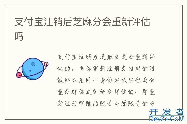 品牌型号:iPhone13 pro pro 系统:iOS 15.6.1 软件版本:支付宝10.2.90支付宝注销后芝麻分是会重新评估的。当用户的支付宝注销后那么你原有的芝麻分就不会存在了,当你重新注册