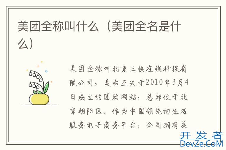 品牌型号:iPhone13 pro pro 系统:IOS15.5 软件版本:美团12.0.202&&美团外卖7.86.5美团全称叫北京三快在线科技有限公司,是由王兴于2010年3月4日成立的团购网站,