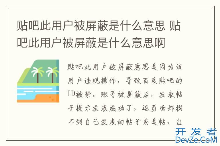 品牌型号:iPhone13 pro pro 系统:IOS15.5 软件版本:百度贴吧12.25.1贴吧此用户被屏蔽意思是因为该用户违规操作,导致百度贴吧的ID被禁。账号被屏蔽后,发表帖子提示发表成功了