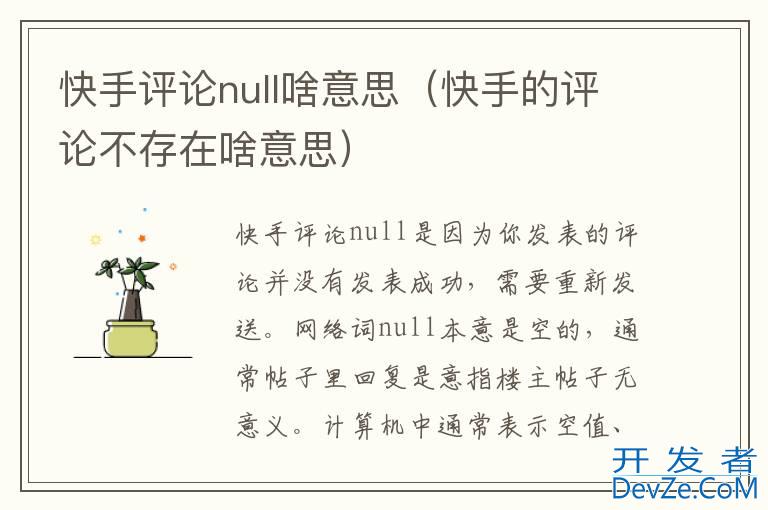 品牌型号:iPhone13 pro pro 系统:iOS 15.6.1 软件版本:快手10.7.20快手评论null是因为你发表的评论并没有发表成功,需要重新发送。网络词null本意是空的,通常帖子里