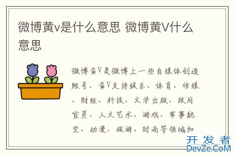 品牌型号:iPhone13 pro pro 系统:IOS15.5 软件版本:微博12.7.1微博黄V是微博上一些自媒体创造账号。黄V支持娱乐、体育、传媒、财经、科技、文学出版、政府官员、人文艺术、游戏
