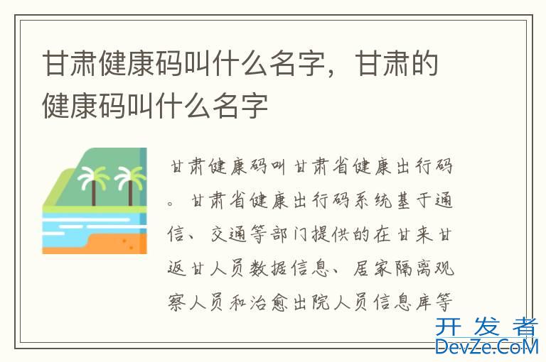 品牌型号:华为P50 系统:HarmonyOS 3 软件版本:微信8.0.25甘肃健康码叫甘肃省健康出行码。甘肃省健康出行码系统基于通信、交通等部门提供的在甘来甘返甘人员数据信息、甘肃省全员人口信息库