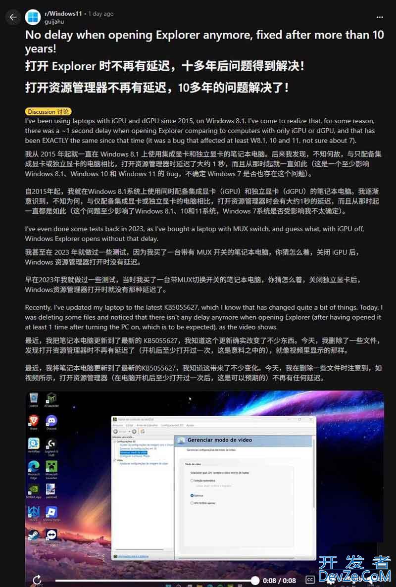 长期以来,Windows 用户一直受到文件资源管理器(File Explorer)卡顿问题的困扰。从 Windows 8.1 时代开始,文件资源管理器就出现了响应迟缓的http://www.devze.com情况,这一问题在后续的 Windows 10 和 Windows 1