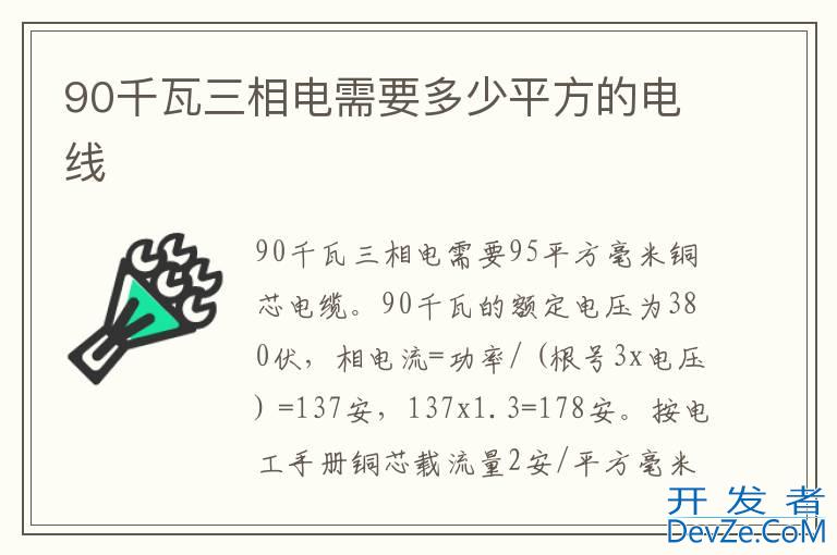 品牌型号:远东电缆 系统:NH-YJV90千瓦三相电需要95平方毫米铜芯电缆。90千开发者_如何学JAVA瓦的额定电压为380伏,相电流=功率/ (根号3x电压) =90/ (根号3x380) =13
