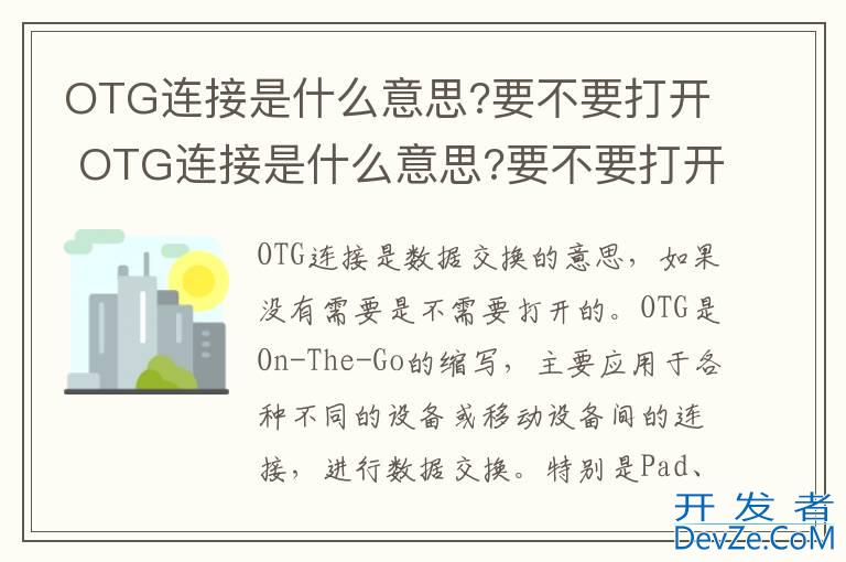 品牌型号:山泽OTG数据线 系统:CL91OTG连接是数据交换的意思,如果没有需要是不需要打开的。OTG是On-The-Go的缩写,主要应用于各种不同的设备或移动设备间的连接,进行数据交换。特别是Pa