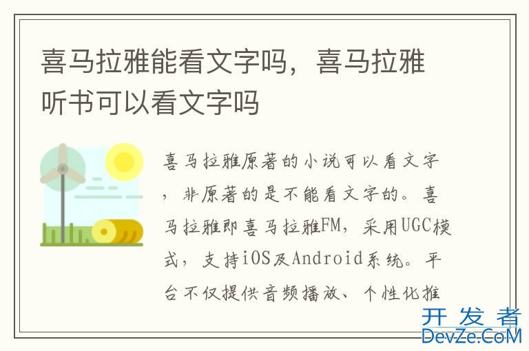 品牌型号:华为P50 系统:HarmonyOS 3 软件版本:喜马拉雅9.0.48.3喜马拉雅原著的小说可以看文字,非原著的是不能看文字的。喜马拉雅即喜马拉雅FM,是上海证大喜马拉雅网络科技有限公司于